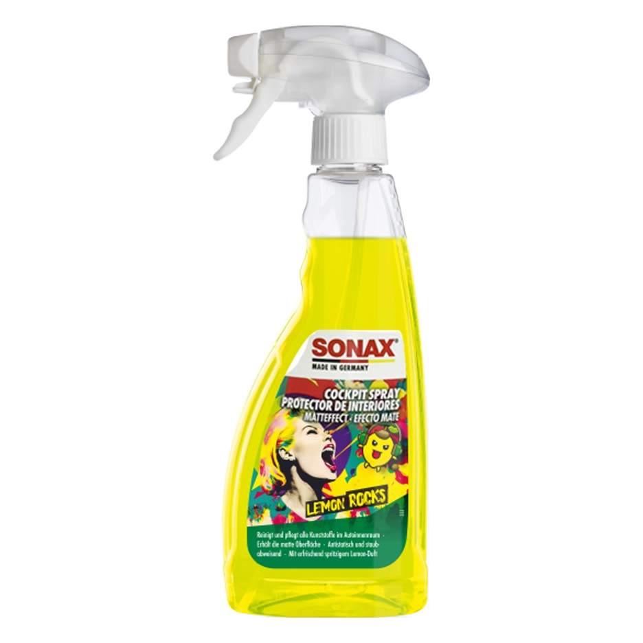 اسپری محافظ کاکپیت سوناکس (SONAX Cockpit Spray Matt Effect Lemon Rocks) یک تمیزکننده و نگهدارنده تخصصی برای سطوح پلاستیکی داخل خودرو است که با فرمولی پیشرفته و فاقد سیلیکون، علاوهبر تمیزی، ظاهری طبیعی و مات به سطوح میبخشد.
